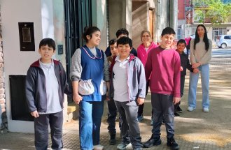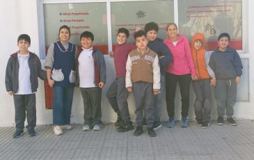 Los alumnos de 2°A del nivel primario recorrieron la manzana de la escuela aprendiendo a desplazarse contemplando normas de seguridad vial.