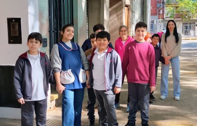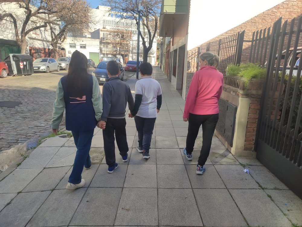 Los alumnos de 2°A del nivel primario recorrieron la manzana de la escuela aprendiendo a desplazarse contemplando normas de seguridad vial.